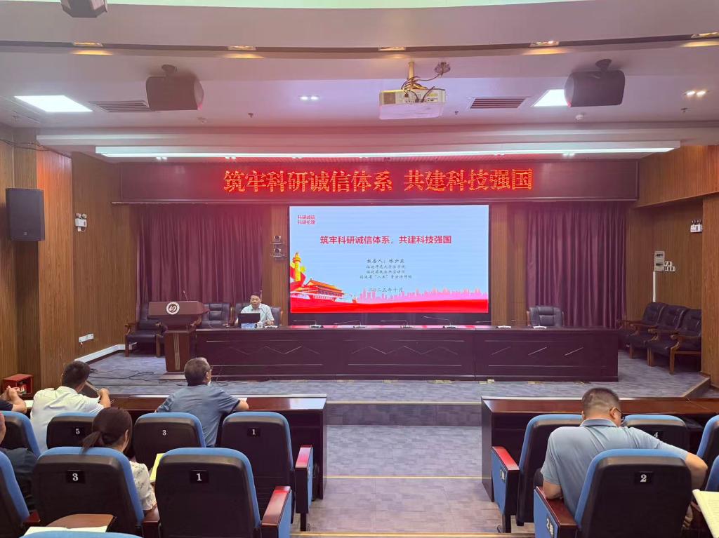 为强化全校师生及医护人员的科研诚信意识,规范科研经费使用,营造风清气正、求真务实的良好学术生态和科研环境,2025年10月10日,星空综合官网召开科研诚信讲座。福建省科技厅科研诚信宣讲团专家、福建师范大学法学院副教授林少东应邀作主题宣讲。