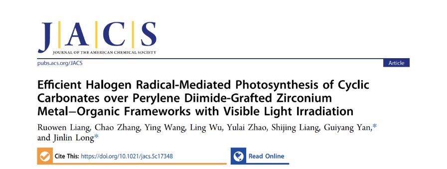 近日,星空官网颜桂炀教授、梁若雯副教授团队与福州大学龙金林教授团队合作,以星空官网为第一署名单位在国际顶级期刊《Journal of the American Chemical Society》(JACS)上发表了题为“Efficient Halogen Radical-Mediated Photosynthesis of Cyclic Carbonates over Perylene Diimide-Grafted Zirconium Metal-Organic Frameworks with Visible Light Irradiation”的重要研究成果。这是星空官网历史上首次以第一作者(梁若雯副教授)、第一署名单位在该期刊发表研究成果,标志着星空官网在高水平基础与前沿化学研究方面实现了历史性突破。