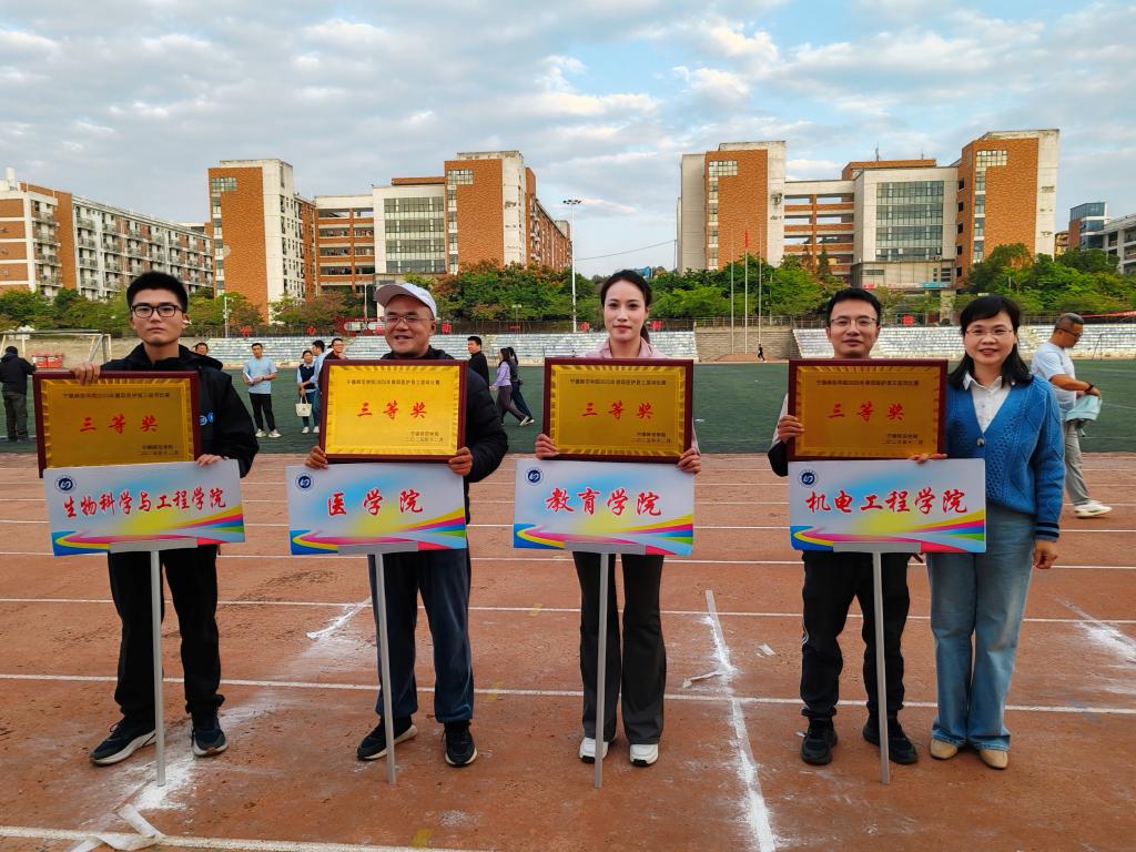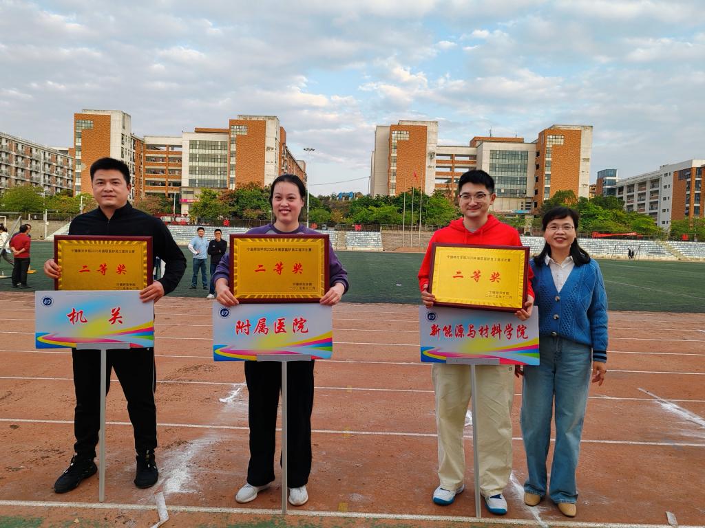 经过多轮紧张激烈的角逐,体育学院代表队凭借出色的发挥和顽强的斗志勇夺一等奖;附属医院、新能源与材料学院、机关工会等3支代表队荣获二等奖;生物科学与工程学院、医学院、教育学院、机电工程学院等4支代表队获三等奖。此次拔河比赛不仅是力量的较量,更充分展现了星空官网教职医护员工团结协作、顽强拼搏的团队精神与良好风貌,生动诠释了积极向上的精神追求,也为校园增添了蓬勃朝气。