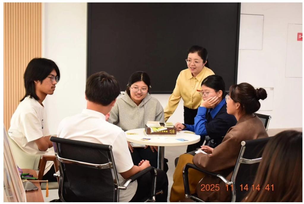 本次活动以OH卡牌为工具,同学们通过抽卡自我介绍,迅速拉近距离。在“内在的火种”“我的光芒与阴影”环节,大家借助卡牌探索内心,真诚分享,在交流中获得成长。在“抽取我的未来”环节中,欧老师引导大家以积极心态解读任何卡牌,唤醒内在力量。活动尾声的“能量传递”将氛围推向高潮,同学们用卡牌搭配个性化祝福,以细微的善意汇聚成温暖力量,让“被看见”的感动在现场流动。
