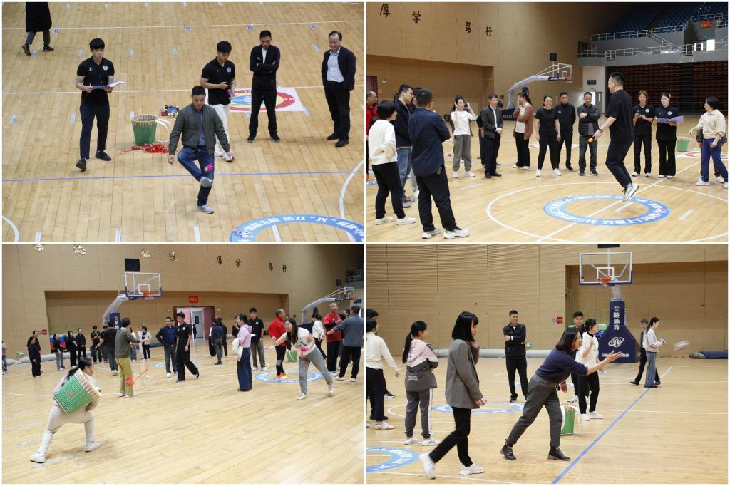 运动会场上,参赛教职工身姿矫健、配合默契,在各个项目竞技中全力以赴,现场气氛热烈,充分展现了团结向上的团队风貌。跳绳比赛中,选手们跳跃连贯,节奏明快;毽球赛场上,彩毽翻飞,脚步轻盈;背篓接球项目中,搭档间心有灵犀,精准投递;沙包投掷赛则考验技巧与策略,队员的每一次出手都凝聚着团队的期待。经过激烈角逐,最终教务处代表队、学生工作处代表队荣获一等奖,保卫处代表队、人事处代表队荣获二等奖,现代教育技术中心代表队、后勤基建处代表队、组织部统战部机关党委代表队荣获三等奖。