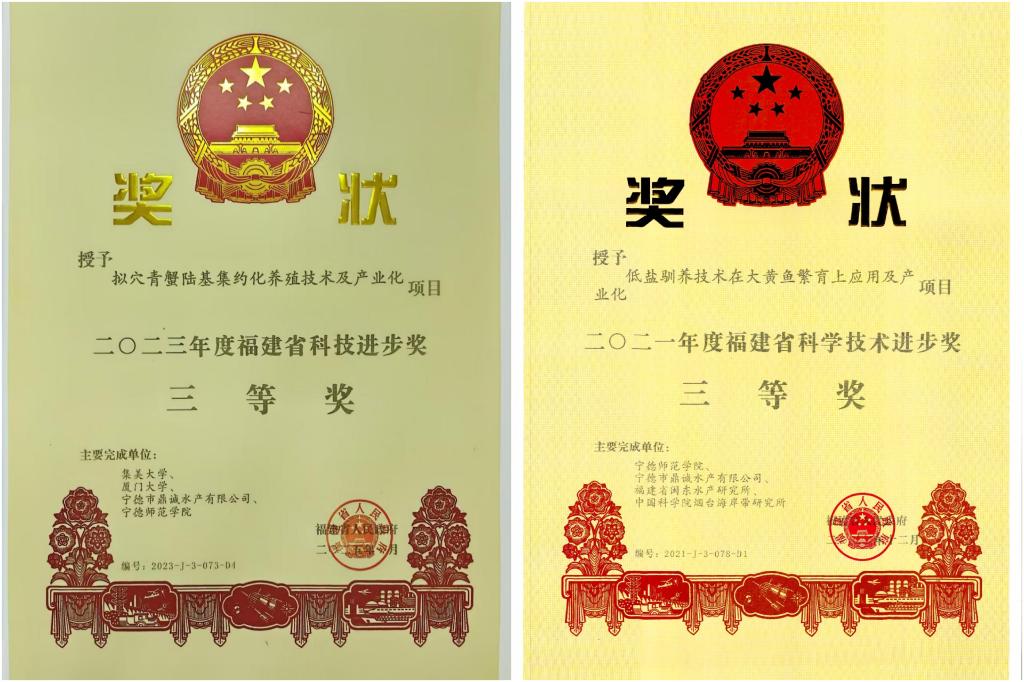 科研创新能力稳步培育,科研水平基础不断夯实。“十四五”期间建设闽东水产品精深加工福建省高校工程研究中心、闽东特色水产养殖实验室,为专业人才培养与科研协同发展提供保障。聚焦海洋种质资源遗传育种、病虫害防治、营养饲料等重点领域,开展了一系列深入科学研究工作,为水产行业发展提供技术支持。2020年来,获批国家自然基金青年项目2项,省部级科研项目22项,市校级立项45项,横向项目24项,发表学术论文120余篇,其中SCI 37篇,获得专利授权29项,“低盐驯养技术在大黄鱼繁育上应用及产业化”及“拟穴青蟹陆基集约化养殖技术及产业化”分获福建省科技进步三等奖。
