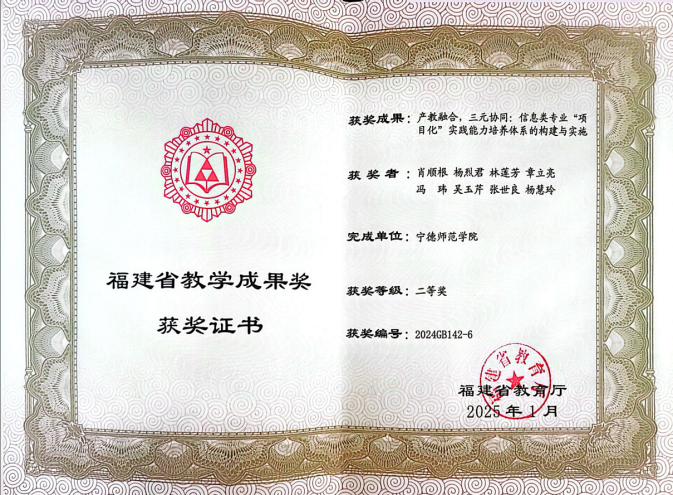 聚焦新工科建设,学科专业建设实现量质齐升。获福建省教学成果二等奖2项,立项教学团队3个、出版教材9部,承担省部级及以上项目11项(含教育部协同育人项目3项、省级教改项目5项),数据科学与大数据技术专业通过学士学位评估,计算机科学与技术专业获批辅修试点,复合型人才培养路径持续拓宽。