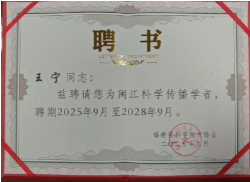 王宁教授被聘为第八批闽江科学传播学者