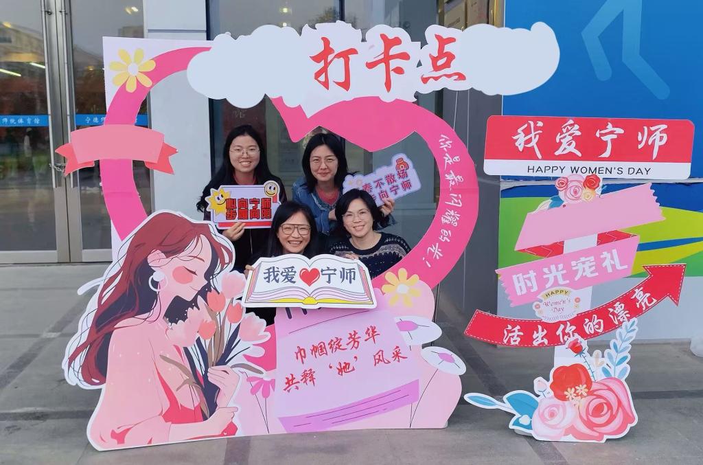 下午4点,队伍整齐出发,女教职工们从东侨校区运动场出发,途经花海广场、湖滨北路、行政北楼、求索大道、图书馆、体育馆等校园地标。活动在花海广场、图书馆、体育馆等地设3个打卡点,提供趣味优秀和能量补给。在花海广场的“花式投壶”站点,大家争先投掷,欢呼声不断;“健康心愿墙”前,大家写下健康小愿望;在“我爱宁师”打卡处女老师们手持创意标语牌拍照,笑容晏晏。