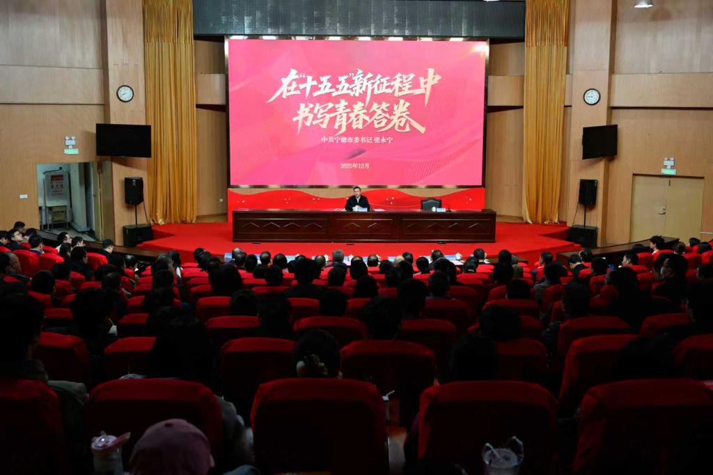 张永宁介绍了宁德发展取得的成就和发展前景,聚焦“十五五”时期与青年成长紧密相关的产业、创新、生活、就业等方面变化,阐述了新时代青年面临的历史机遇和时代使命。他说,“十五五”时期是广大青年大展身手、大有可为的黄金机遇期,大家要把握时代之变,找准人生坐标,把个人理想融入国家发展的时代洪流中,在“十五五”的广阔舞台上勇毅前行、奋发有为。同时诚邀青年学子选择宁德、留在宁德,用智慧和汗水探索无限可能,与城市共成长、同奋斗,让人生理想在宁德照进现实。
