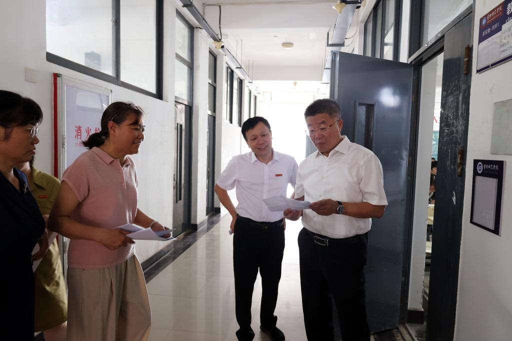 校领导一行深入求实楼、求真楼等各教学场所、多媒体集控中心,重点对教师到岗、学生出勤、课堂秩序、教学设备及环境卫生等情况进行检查指导,并随机旁听部分课堂教学,详细了解了教学运行细节,就目前存在的薄弱环节提出有针对性的改进要求。