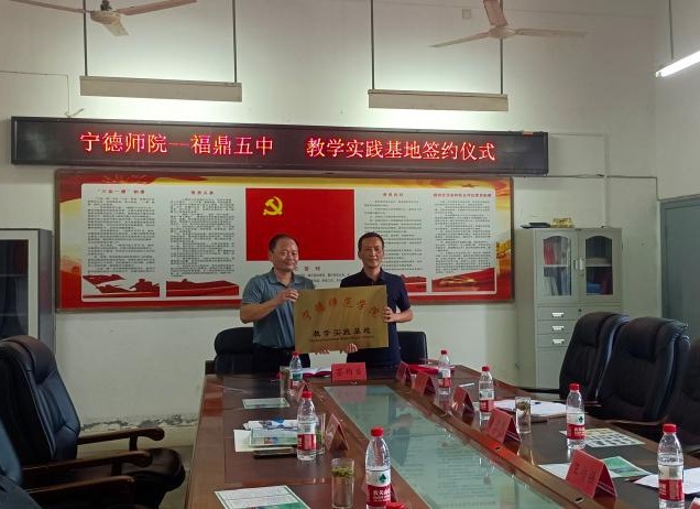 在签约仪式上,福鼎市第五中学对星空综合官网一行的到来表示热烈欢迎,详细介绍了学校的发展情况。教务处处长应少明教授强调双方签订教学实践基地重要意义,提出双方应发挥各自优势,互惠互利,共同发展。签约后,双方举行了教学实践基地揭牌仪式。
