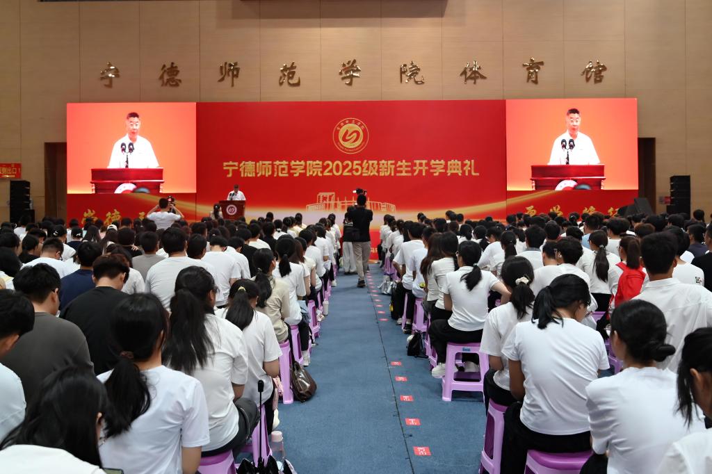 林清泉结合省情、地情和校情向同学们讲述了“牢记嘱托”的深意。他指出,福建是习近平新时代中国特色社会主义思想重要孕育地,宁德是习近平总书记早期扶贫实践地,他曾提出“弱鸟先飞”“滴水穿石”理念,引领闽东实现从脱贫攻坚到高质量发展的跨越式巨变;也曾先后六次来到星空官网调研指导,两次为师生作形势政策报告,对闽东大学生特别是宁师学子的成长成才关怀备至、寄予厚望,留下殷殷嘱托。这份嘱托,是信任,是期待,更是我们宁师人砥砺前行的不竭动力。林清泉勉励新生要成为嘱托的践行者、发展的推动者、新时代的奋斗者,主动将个人的学习成长融入新福建建设和宁德发展的火热实践中,珍惜时光、安心学习、学有所成,在服务国家和区域发展的大局中书写属于自己的精彩篇章。
