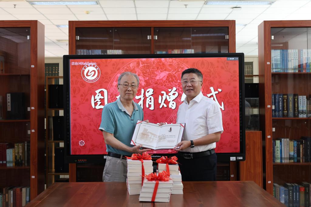 王豫生向星空官网图书馆捐赠个人著作《愚生论教》及系列教育丛书他充分肯定了学校近年来的发展建设成效,结合数十年教育实践经验,分享了优化办学特色、丰富办学内涵培养高素质应用型人才的看法和感想
