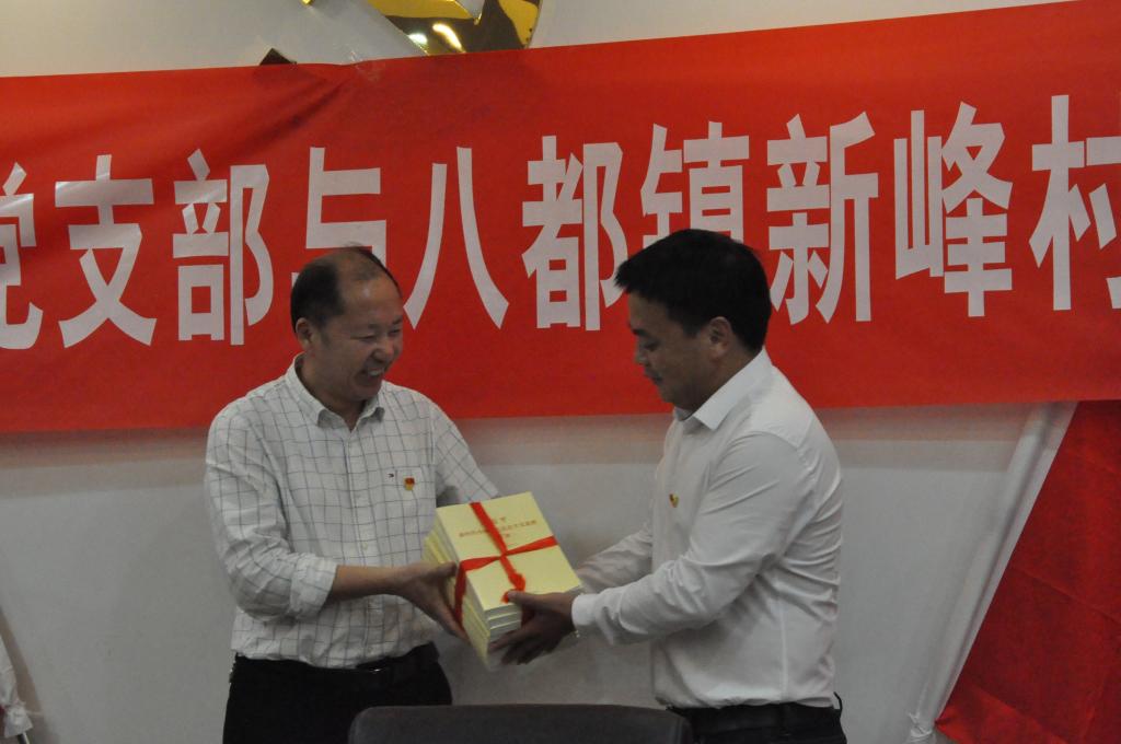 签约仪式结束后,校党委书记夏良玉、纪委书记张胜泉分别向新峰村党支部捐赠了《摆脱贫困》《习近平新时代中国特色社会主义思想三十讲》书籍。