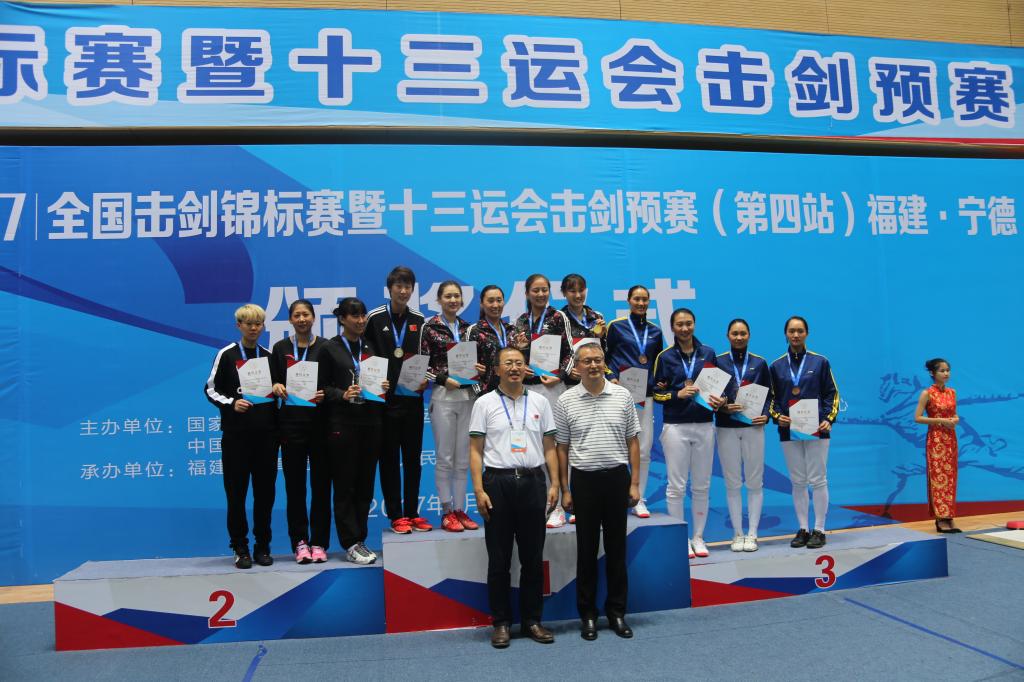 夏良玉书记为击剑女重团体比赛获奖团队颁奖并合影
