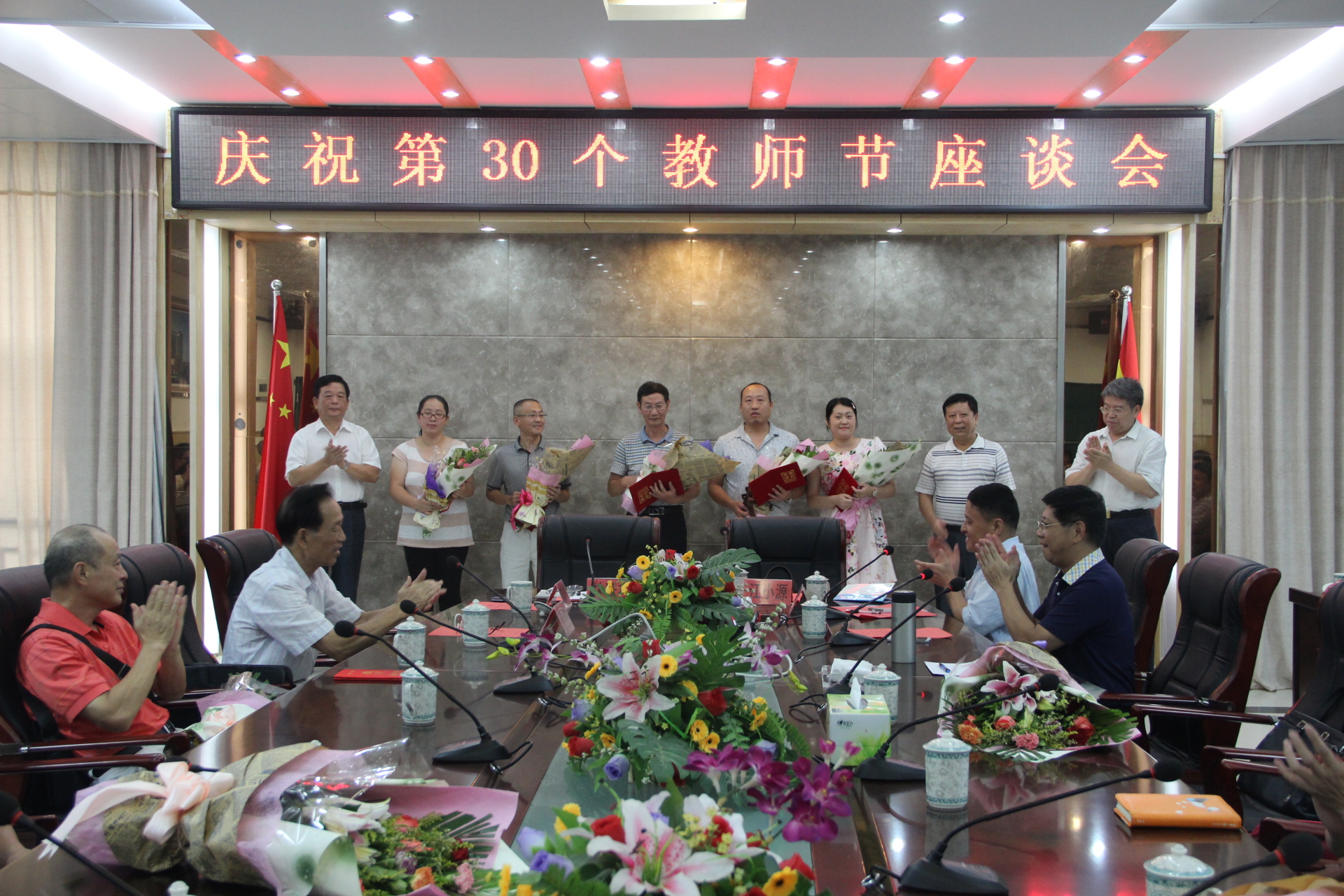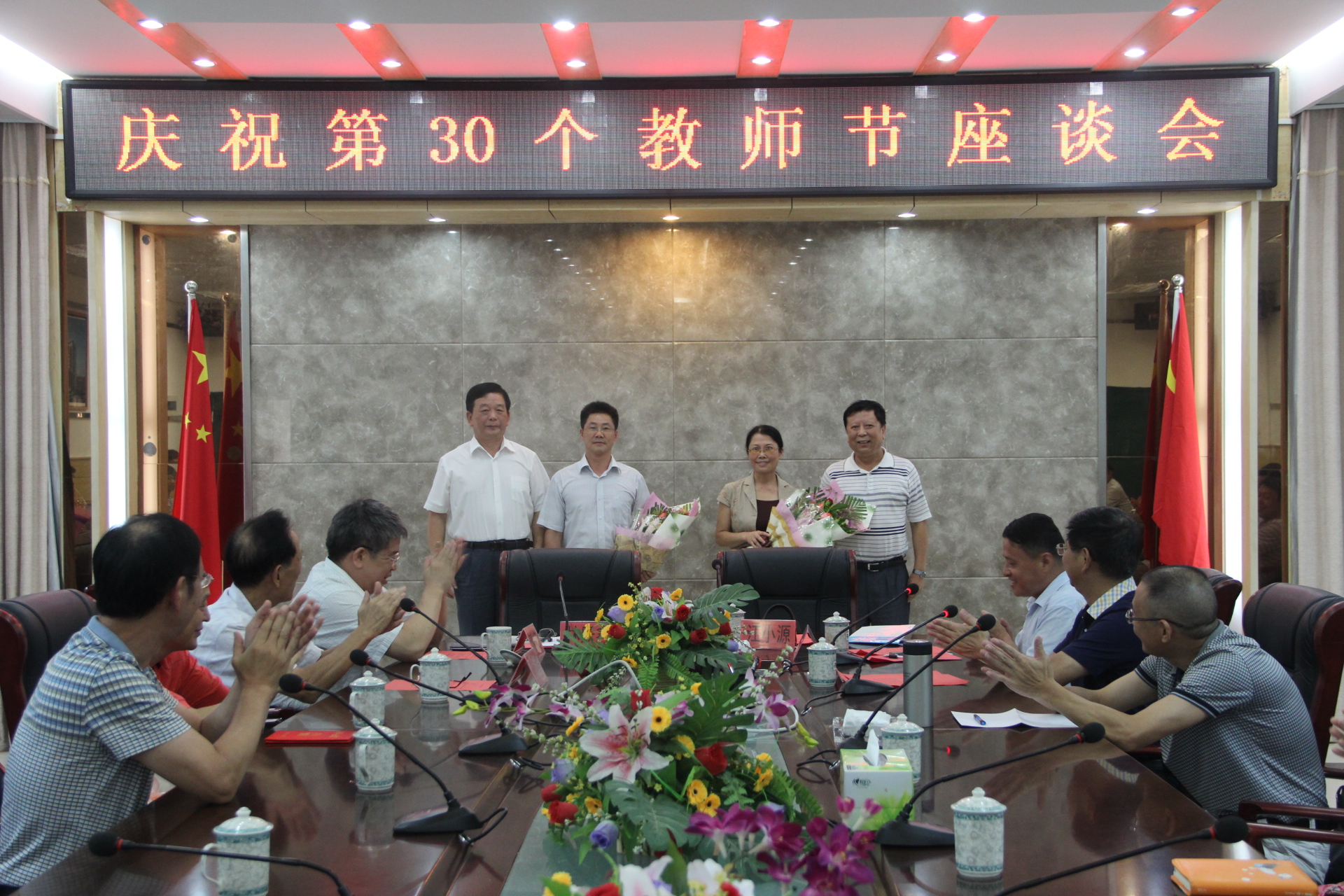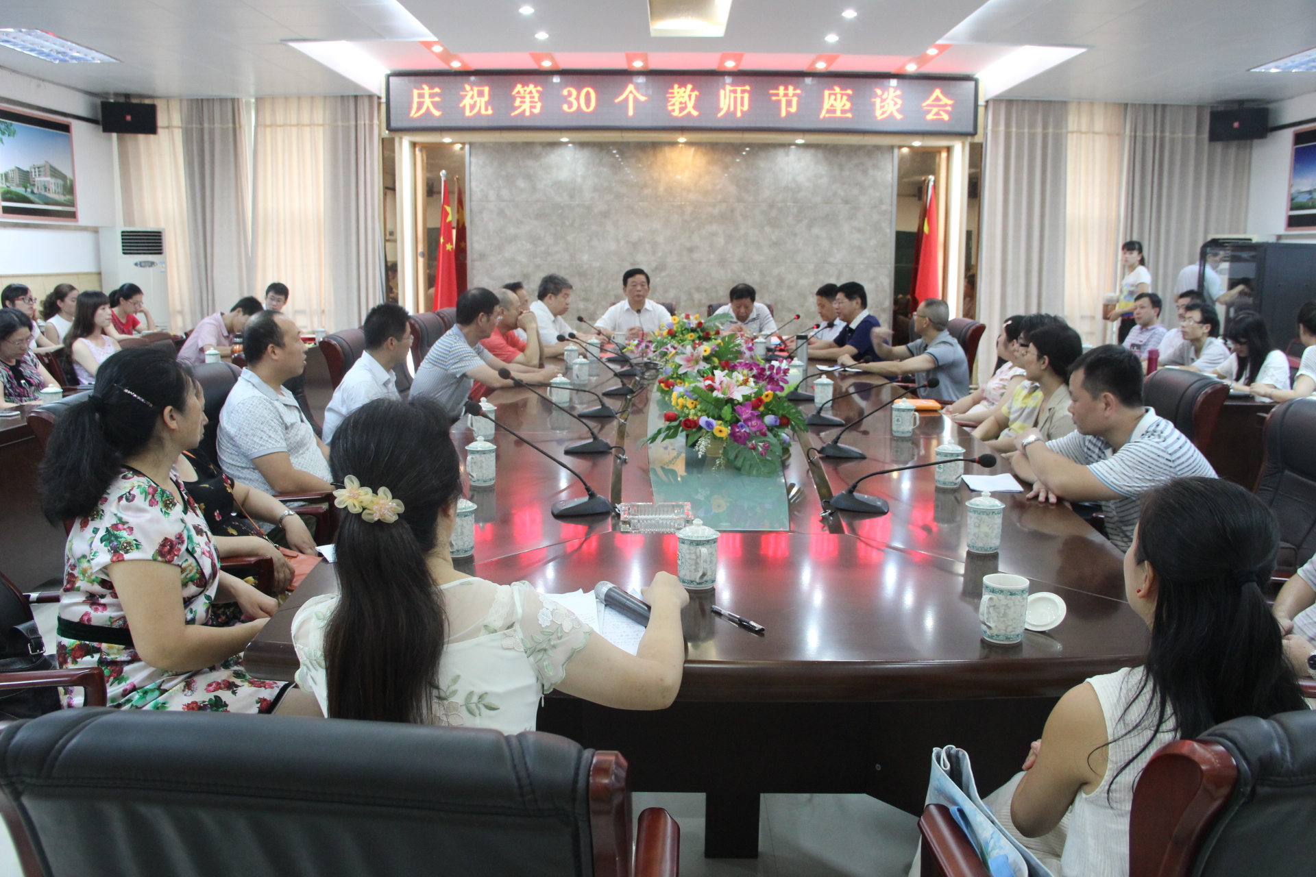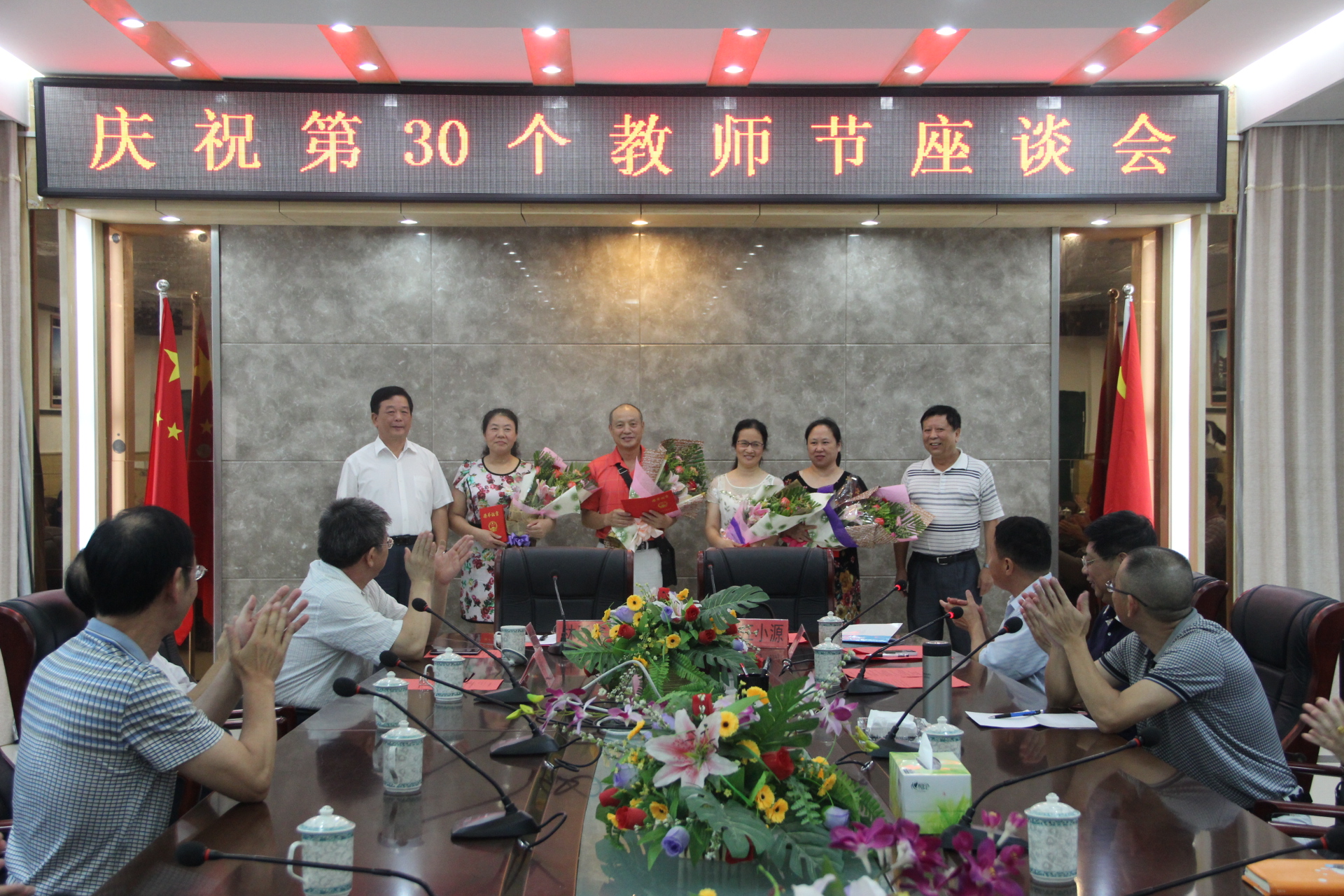 9月10日下午,星空官网在求知楼A308会议室召开第30个教师节表彰座谈会,认真学习习近平总书记9月9日在北京师范大学考察时的重要讲话精神,庆祝第30个教师节到来。校党委书记江小源、校长林跃鑫、党委副书记张星、纪委书记何如芳、副校长谢向东等在家校领导,离退休教师代表,从教30(25)周年教师代表,荣获“2014年省市优秀教师”、“市先进教育工作者”、星空官网第一届“我心目中的好老师”称号的教师,新聘教师代表及学生代表等50多人参加会议。张星副书记主持会议。