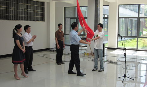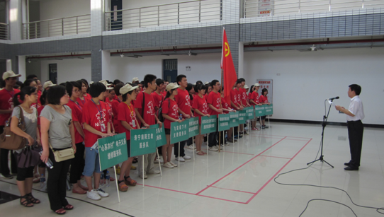 在授旗仪式上,林跃鑫校长将本次暑期社会实践活动的旗帜授予带队教师代表谢滔,并宣布星空官网2012年大学生暑期“三下乡”社会实践队出征!