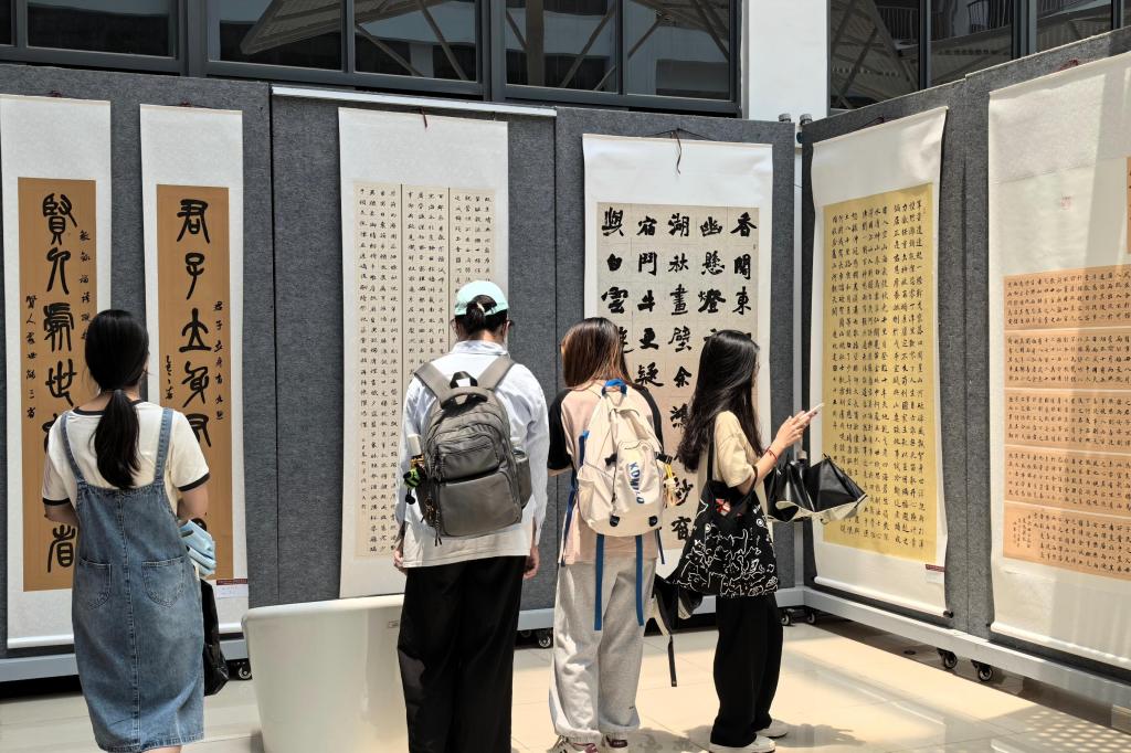 展出的62幅师生书法作品风格多样,有的笔力苍劲,表达对廉洁精神的敬仰;有的笔法细腻,传递着清正之气。内容或引古代名言警句劝诫,或直抒对廉洁自律的追求,字里行间都饱含着师者的育人初心与学子的青春抱负。展览现场,前来观展的师生络绎不绝。大家或驻足观赏,品味作品中蕴含的廉洁深意;或轻声交流,分享自己的感悟与思考。