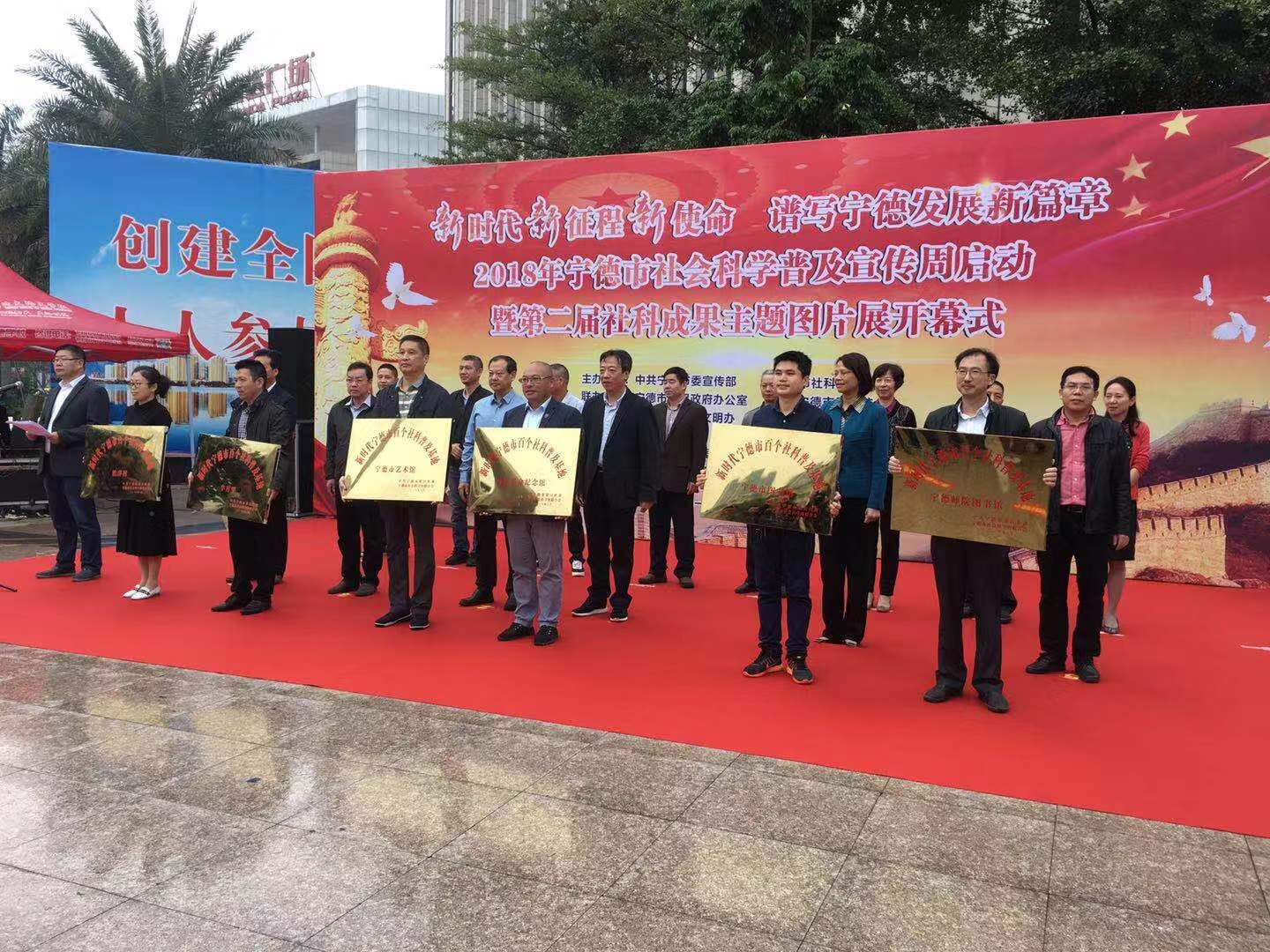 10月22日上午,2018年宁德市社会科学普及宣传周启动仪式暨第二届社科成果主题图片展开幕式在蕉城区先锋广场举行。宁德市委常委、宣传部长谢再春,市人大常委会副主任冯桂华,市政府副市长林月玲,市政协副主席程树平等领导为新时代宁德市社科普及基地首批代表授牌并向市社科普及基地代表和高校赠送社科书籍。星空官网图书馆馆长郭正武研究馆员代表学校图书馆接受“新时代宁德市百个社科普及基地”牌匾以及本次活动社科赠书。在启动仪式上,我馆还作为宁德市图书馆学会成员之一,参与了相关活动。