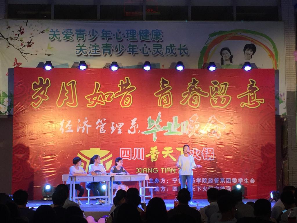 又是一年花开之际,又是一年毕业之时。 5月23日晚7点经济管理系于东侨校区求是楼大厅举行了“岁月如昔,青春留意”——经管系2013级毕业晚会。经管系主任兼党总支书记游国斌、党总支副书记周建辉等老师与2013级毕业生共同观看了本次毕业晚会。