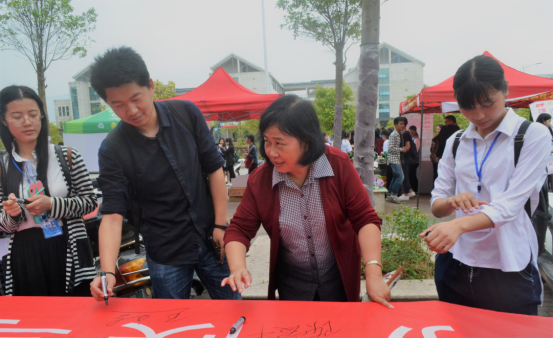 系党总支书记陈爱平、系团委老师王永吉参加现场签名活动