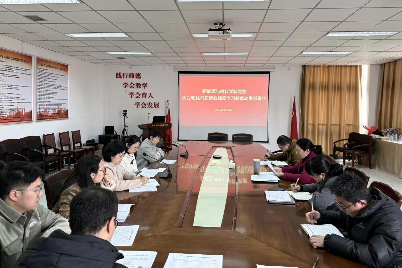 3月10日上午,新能源与材料学院召开党委扩大会议,专题部署树立和践行正确政绩观学习教育工作。会议深入学习贯彻习近平总书记关于树立和践行正确政绩观的重要论述,全面落实党中央、省委及学校党委相关部署,结合学院学科建设、人才培养、科研创新实际统筹安排。学院党委书记郭赛玉主持会议并讲话,党委班子全体成员、各党支部书记及科室负责人参加会议。会议指出,开展树立和践行正确政绩观学习教育,是党中央立足“十五五”开...