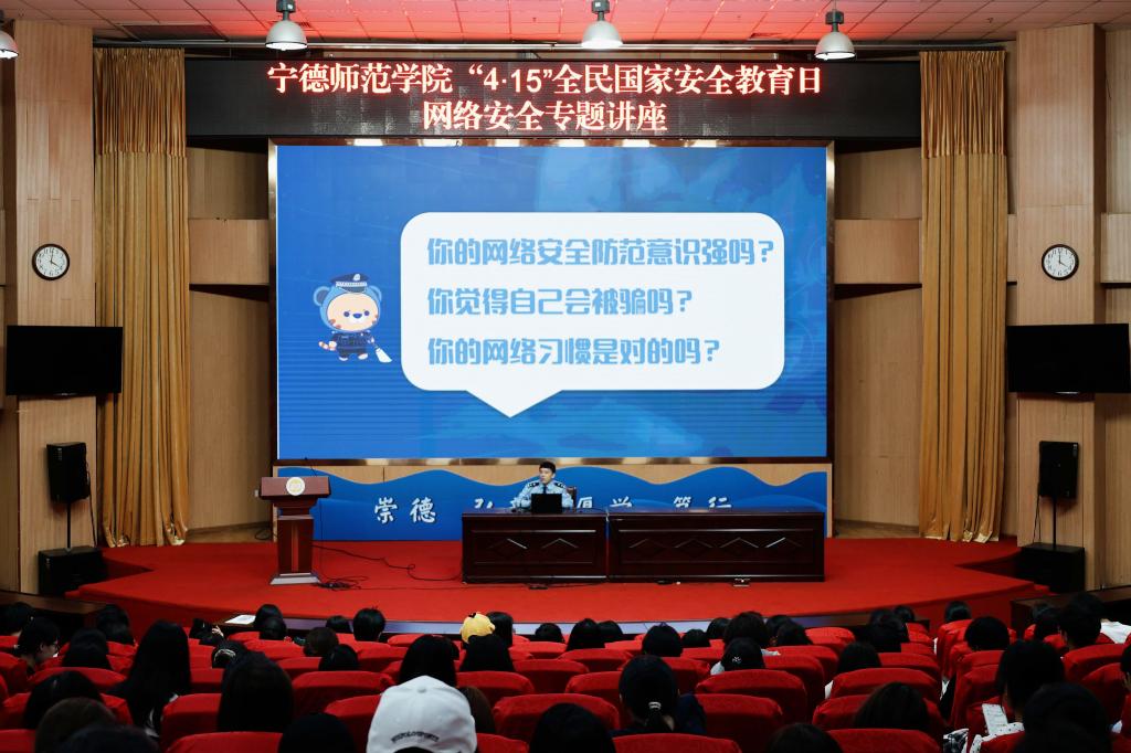 为深入贯彻落实总体国家安全观,切实提升广大青年学子的网络安全素养和风险防范能力,4月15日下午,宣传部举办网络安全专题讲座,邀请宁德市公安局网安支队综合大队副大队长张思诚以《树立正确网络安全观 维护清朗网络空间 共同维护国家安全》为题作专题讲座,来自各二级学院400余名学生代表到场聆听。讲座张思诚立足公安实战视角,通过剖析高校周边发生的典型网络诈骗、公民个人信息泄露等案例,以案释法、以例警示。他深入解...